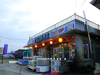 돌고래횟집은 제부도 선창으로 가는 해안도로에 위치하고 있습니다.