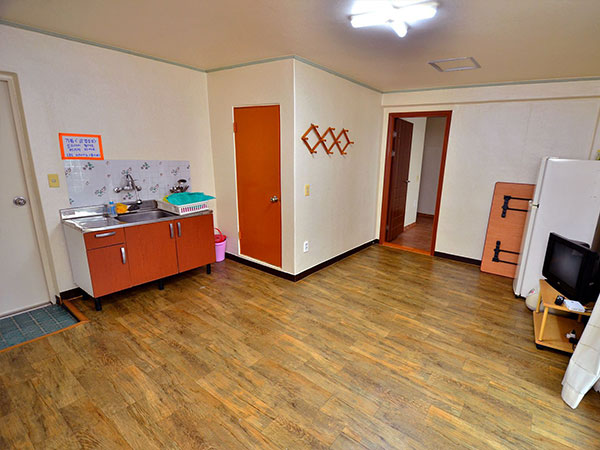 그리고 2층,3층은 침대방,7인실,10인실로 되어 있으며, 특징은 각방마다 크기가 같은 거실이 딸려 있고,거실에는 TV,냉장고는물론 싱크대 전기밥솥등 취사도구가 준비되어 있답니다.
